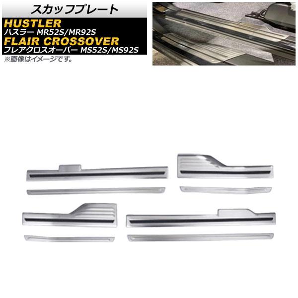 スカッフプレート スズキ ハスラー MR52S/MR92S 2020年01月〜 シルバー ステンレス製 ヘアライン仕上げ 入数:1セット(8個) AP-SG216-SI