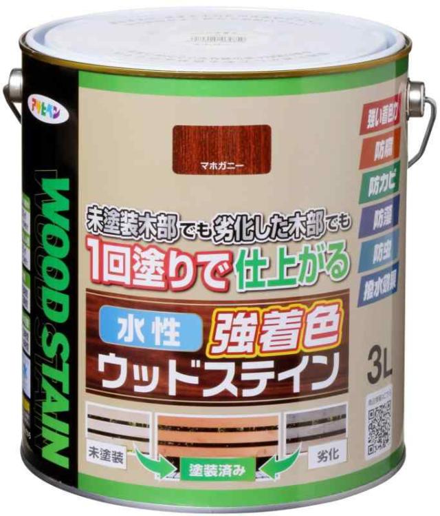アサヒペン 水性強着色ウッドステイン (3L, 塗料, マホガニー)