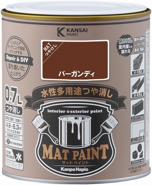 カンペハピオ 水性多用途つや消し マットペイント バーガンディ 0.7L ペンキ DIY