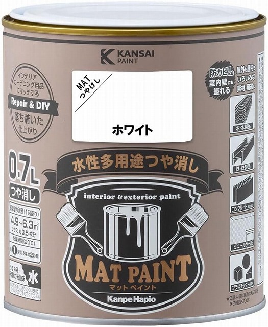 カンペハピオ 水性多用途つや消し マットペイント ホワイト 0.7L ペンキ DIY