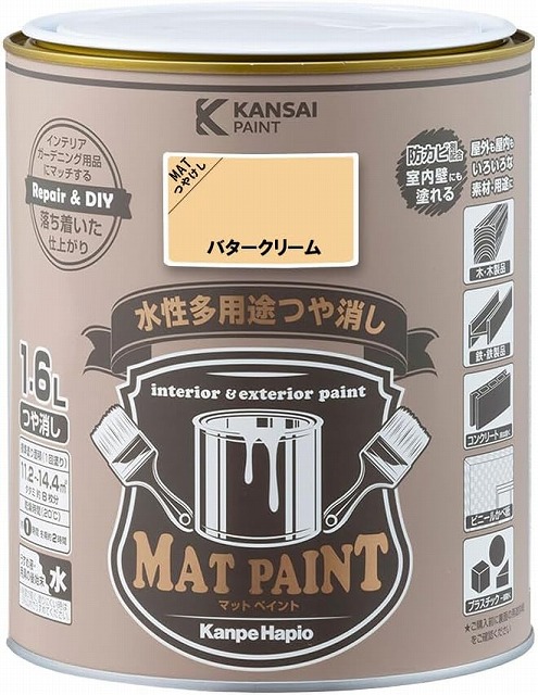 カンペハピオ 水性多用途つや消し マットペイント バタークリーム 1.6L ペンキ DIY