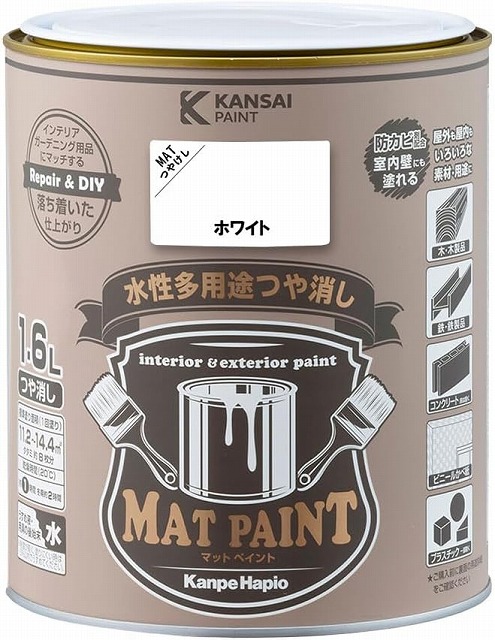 カンペハピオ 水性多用途つや消し マットペイント ホワイト 1.6L ペンキ DIY
