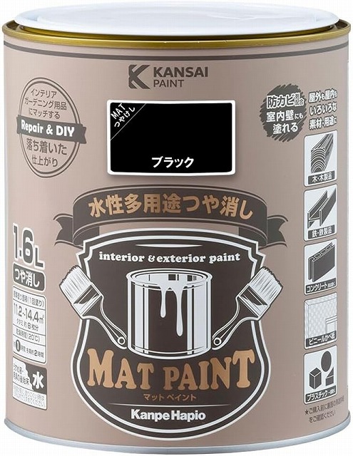 カンペハピオ 水性多用途つや消し マットペイント ブラック 1.6L ペンキ DIY