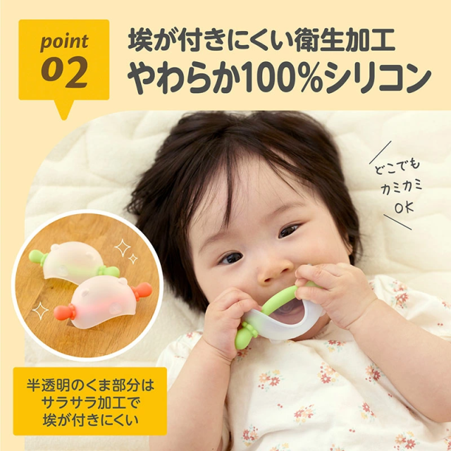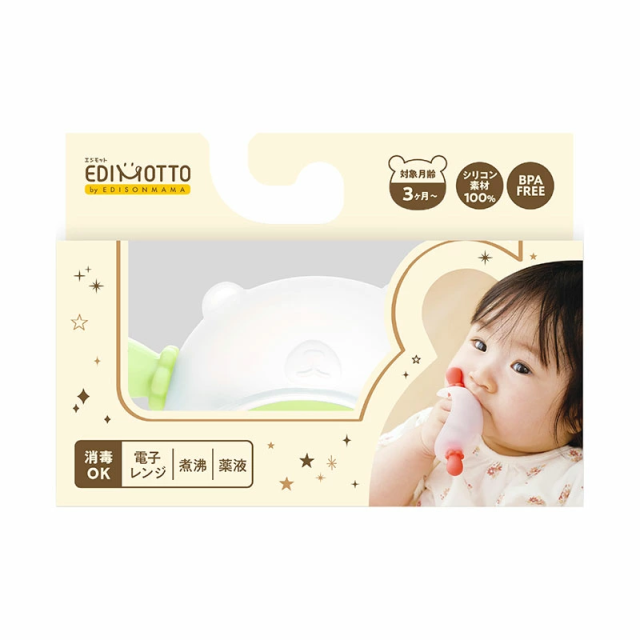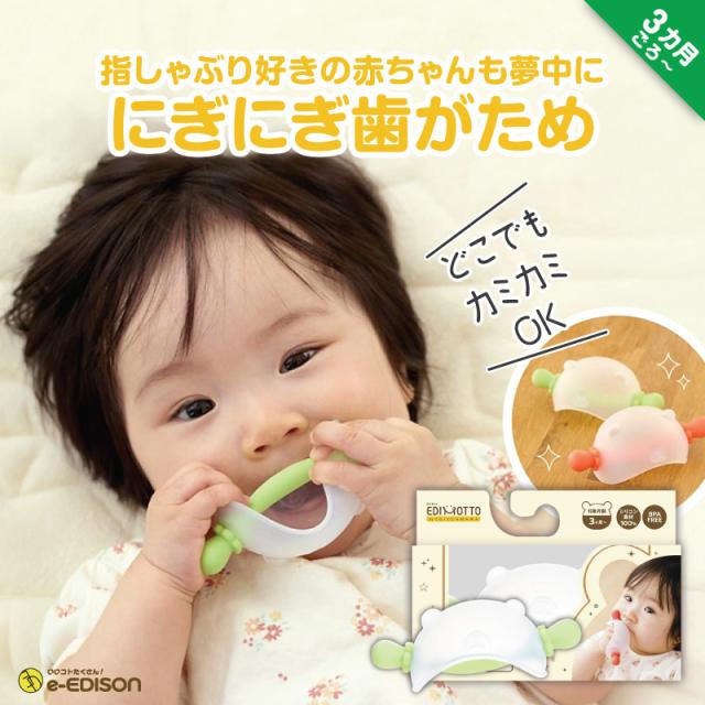 EDIMOTTO にぎにぎ歯がため ベビーベア レッド グリーン 3ヶ月ごろ〜 エジソン歯がため はがため 歯固め おしゃぶり 赤ちゃんおもちゃ 噛むことでむずがゆさを解消 のど突き防止設計 指しゃぶり 乳歯