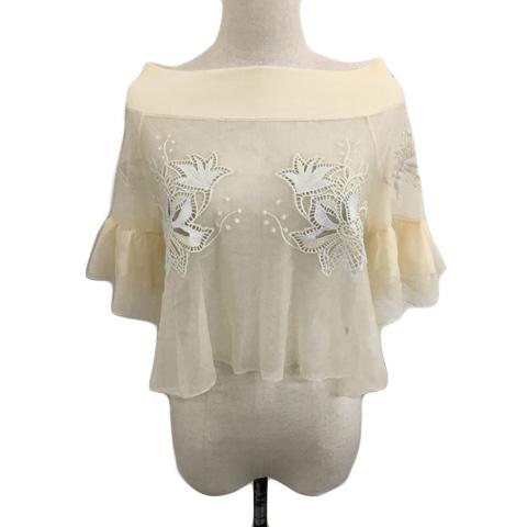【中古】未使用品 スナイデル ブラウス シャツ プルオーバー オフショルダー 透け感 刺繍 五分袖 F ベージュ 白