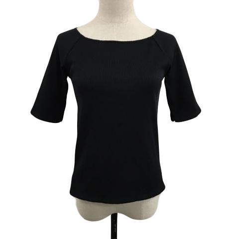 【中古】ティアラ Tiara カットソー ボートネック リブ 五分袖 黒 ブラック レディース