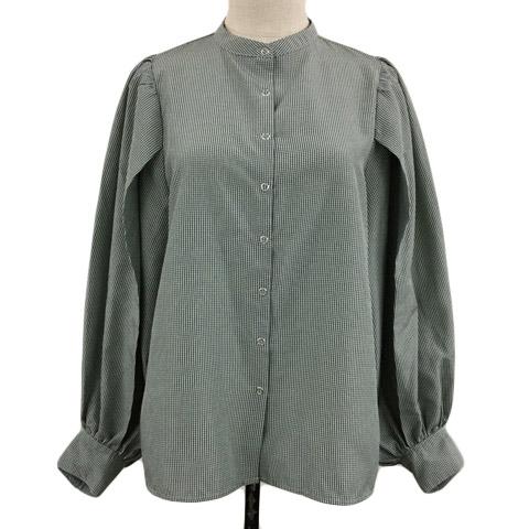【中古】カスタネ シャツ ブラウス バンドカラー チェック バルーンスリーブ 長袖 F 緑 白 グリーン ホワイト