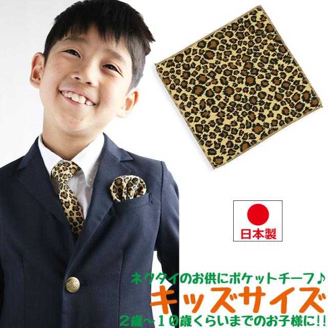 豹柄 ポケットチーフ 日本製 ヒョウ柄 ハンカチーフ キッズ 子供用 お子様用 派手 アニマル柄 動物柄 幼稚園児 入園式 卒園式 入学式 卒業式 結婚式 ステージ衣装 発表会 兄弟 お揃い ペアルック ヤンキー
