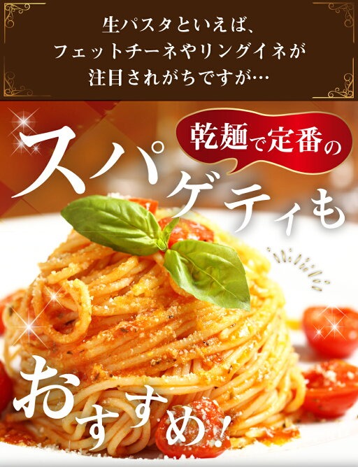 | 麺屋どんまい 生パスタ 麺の本場である讃岐の伝統製法により なめらかな口当たりともっちりとした食感を生み出しました。 きめ細かく仕上がった麺はソースとしっかり絡み、相性抜群! いつものパスタを生パスタに変えるだけで簡単に専門店の味が完成します。 一度食べると忘れられない、今までにない本格もちもち食感、 リピーター続出中の「讃岐製法・生パスタ」をぜひお楽しみください♪ ===3種のおいしさ=== ●フェットチーネ ★★生パスタ人気・圧倒的No.1★★ 生パスタもちもち感を存分に楽しみたい方はこちらの麺がオススメ! 幅広い形状ゆえに生麺がもつ独特な食感を十分に堪能できます。 麺の存在感に負けないしっかりとした味わいの濃厚ソースを絡めて食べ応え抜群♪ 〜相性の良いソース〜 ・カルボナーラ ・ラグーソース ・クリームソース ●リングイネ スパゲティとフェットチーネの両方の食感を楽しんでいただける「楕円形」パスタ。 クセのあるソースにもしっかり絡んで旨みを抱え込み、 麺とソースのバランスを保ってくれます。 〜相性の良いソース〜 ・ジェノベーゼソース ・ミートソース ・オイルソース ●スパゲティ 生パスタ初心者も安心の日本で最も親しまれている万能型パスタ。 まずは乾麺のスパゲティとの違いを食べ比べてみてください! どんなソースにも合わせやすいオールマイティな生麺が いつものパスタをもっとおいしくしてくれるはず☆ 〜相性の良いソース〜 ・和風ソース ・オイルソース ・トマトソース |
