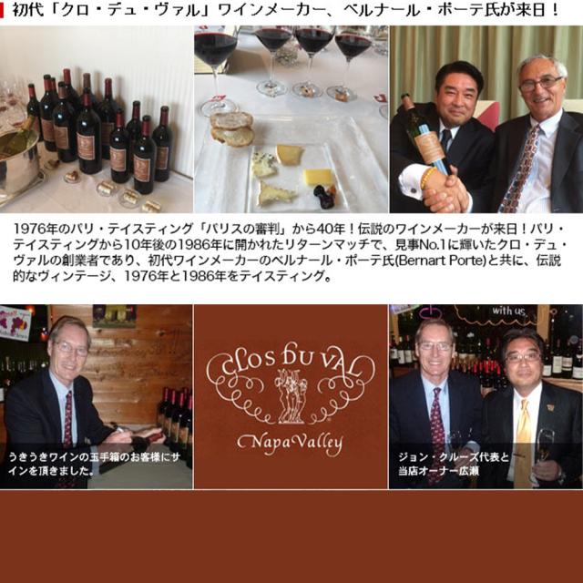 オールドヴィンテージ…1976年パリ・テイスティングに、カリフォルニアから出品された5本のうち1本として、クロ・デュ・ヴァルの初のヴィンテージであるカベルネ・ソーヴィニヨン1972年が選ばれたのは、有名な話として語り継がれています。また、その10年後のリターンマッチでは、その同じカベルネ・ソーヴィニヨン1972年が、10年の熟成を経て見事優勝し、更に評価を高めることとなりました。クロ・デュ・ヴァルのオールドヴォンテージは高く評価されています。