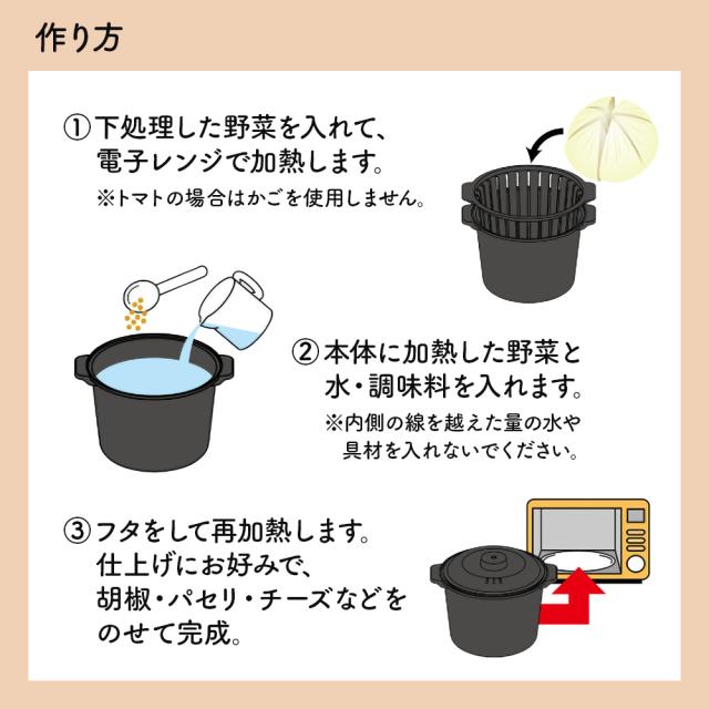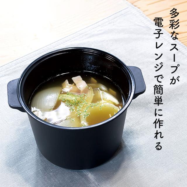 レンジで まるごと野菜スープ ブラック F2672 | 電子レンジ 調理器具 レンジ調理器 便利 調理グッズ 簡単 時短 容器 野菜スープ レンチン タイパ 一人暮らし カゴ付き 1人前