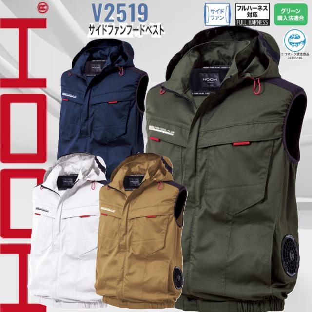 HOOH V2519 サイドファンフードベスト 村上被服 快適ウェア 空調ウェア (社名ネーム一か所無料)