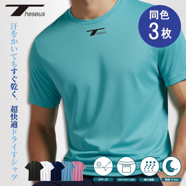 メンズ Tシャツ 半袖 ロゴ ブラック ゴルフシャツ 同色3枚セット ドライ シャツ ウェア スポーツ ジム ジョギング ランニング サッカー ウェア ゴルフ スーツ 春 夏 秋 冬 冷感 速乾 軽量 伸縮性 THESEUS テセウス TB71
