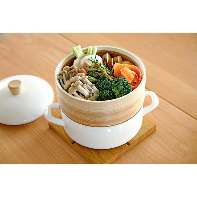 素材の天然木と竹が調理中の余分な水気を適度に吸収し、蒸気が食材をやさしく包み込むように、ふんわりと蒸し上げます。本格的な蒸し料理をお楽しみください。