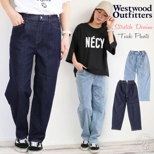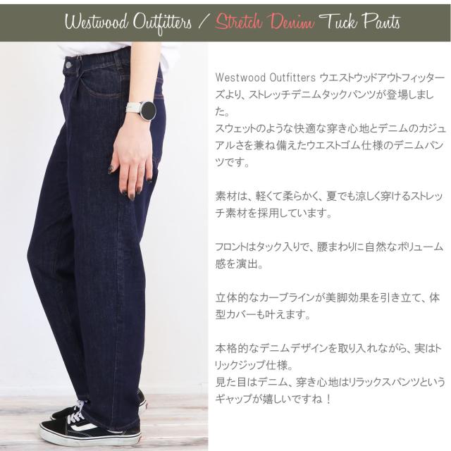 【 涼ふわデニムのタックパンツ 】ウエストウッドアウトフィッターズ 涼しい ストレッチデニム タックパンツ ジーンズ デニムパンツ Westwood Outfitters ( 8114044 ) ウエストゴム リラックスパンツ レディース ボトムス 夏デニム 楽ちん おしゃれ アーベン