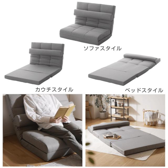 ソファ、カウチ、ベッドと3パターンでお使いいただけるソファベッドです。簡単にスタイルチェンジできるので様々なシーンで活躍します。