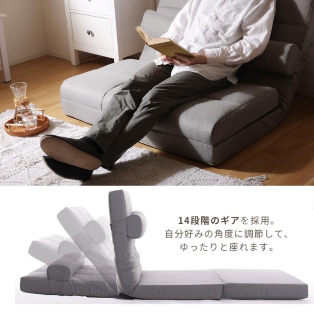座面を広げると、カウチソファスタイルに。背もたれが全身をしっかりと支え、足を伸ばしてゆったり座れます。
