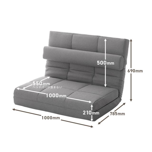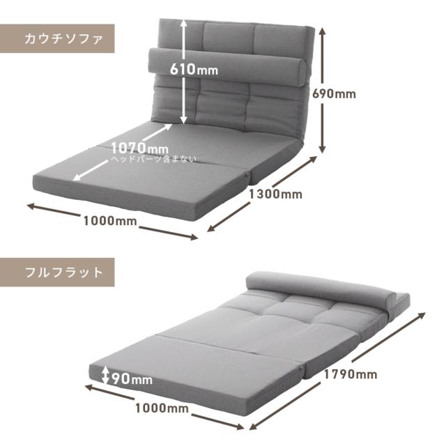 | サイズ | ソファスタイル:幅100×奥行78.5×高さ69(cm) カウチスタイル:幅100×奥行130×高さ69(cm) ベッドスタイル:幅100×奥行179×高さ9(cm) |