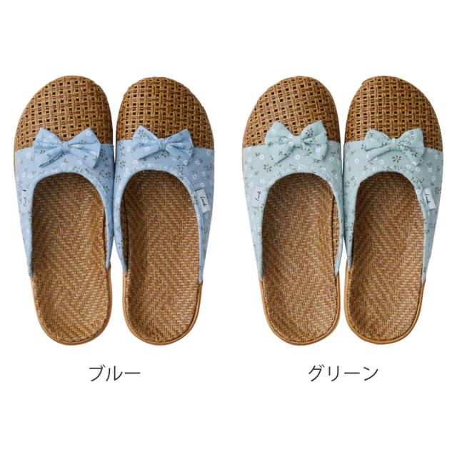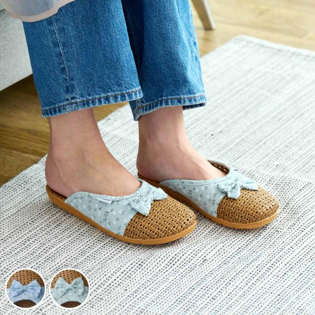 スリッパ リッセ ルームシューズ 約22.0〜24.5cm ( 夏用 涼しい 蒸れにくい サンダル 室内用 リボン EVA 小花柄 かわいい 編み込み風 レディース 花柄 庭先 玄関先 メッシュ 通気性 母の日 ギフト インテリア雑貨 おしゃれ )
