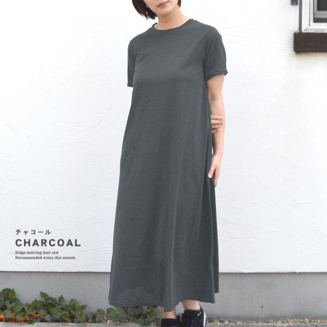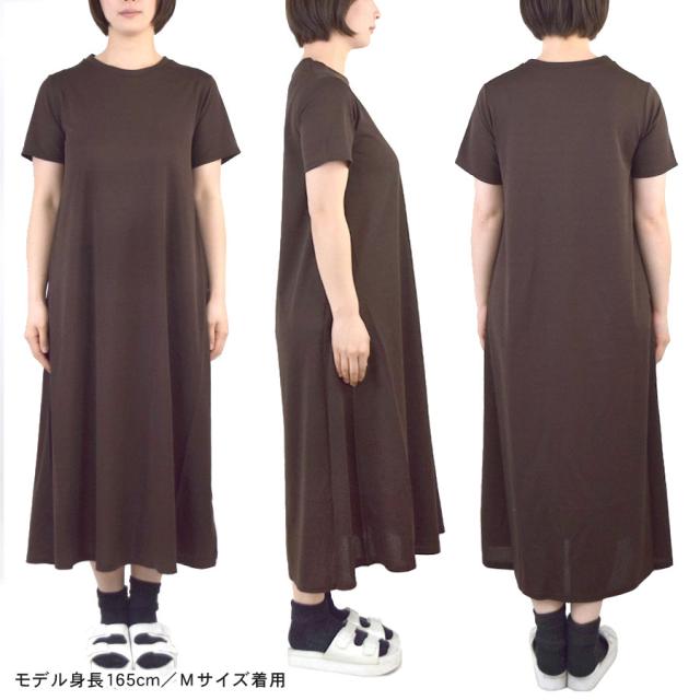 【ワンピース 半袖 マキシ レディース 春 夏 ロング Aライン フクレ生地 フレア きれいめ Tシャツワンピ さらさら ロング丈 マキシ丈 シンプル 無地 ゆったり リラックス マタニティ ルーズ カジュアル】
