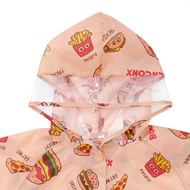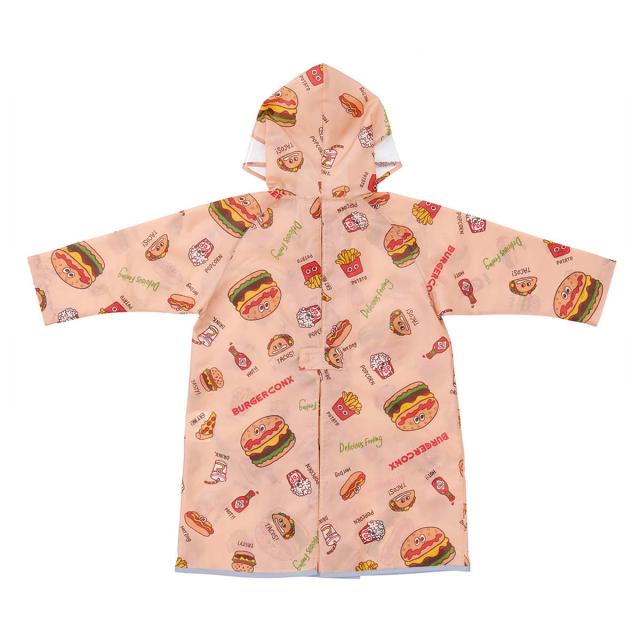 後ろのボタンを外すと幅が広がるので、ランドセルやリュックを背負ったままかぶることができます。雨の日の通園通学に心強いレインコートです。