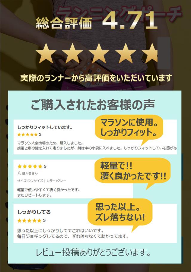 - お盆休み明けからランニングを初めました。 手持ちのバックではユラユラして邪魔で良い物を探してました。 ウエストはゴムで太いので圧迫感も少なく、スマホと鍵を入れるのにバッチリです!