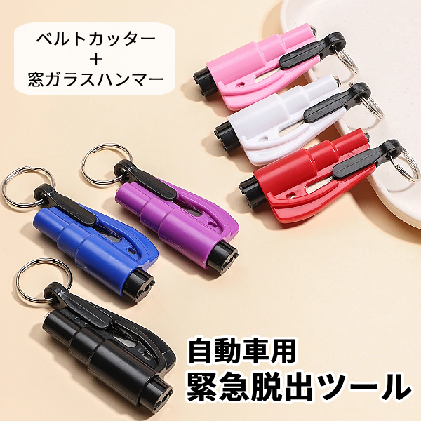 自動車用 緊急脱出 ツール ハンマー キーホルダー 事故 レスキュー 窓ガラス 粉砕 シートベルト カッター 車 脱出 水没 災害 閉じ込め 対策 窓割り 携帯 クラッシャー