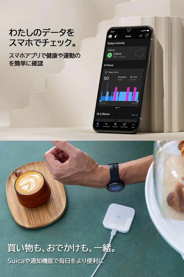 ■稼働時間:スマートウォッチモード:約11日間(常時表示:5日間)、バッテリー節約スマートウォッチモード:約21日間、GPSモード:約21時間、マルチGNSSモード:約17時間、マルチGNSS+音楽再生モード:約8時間
