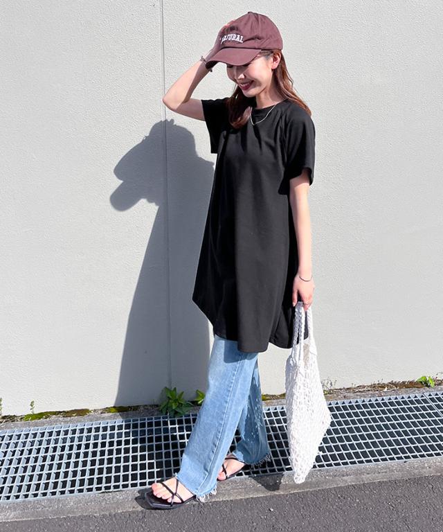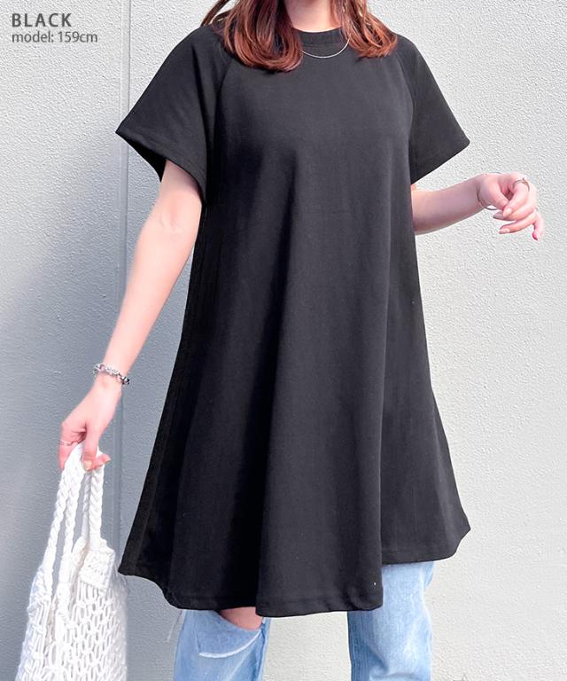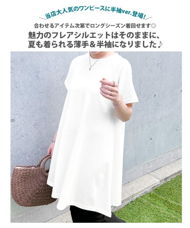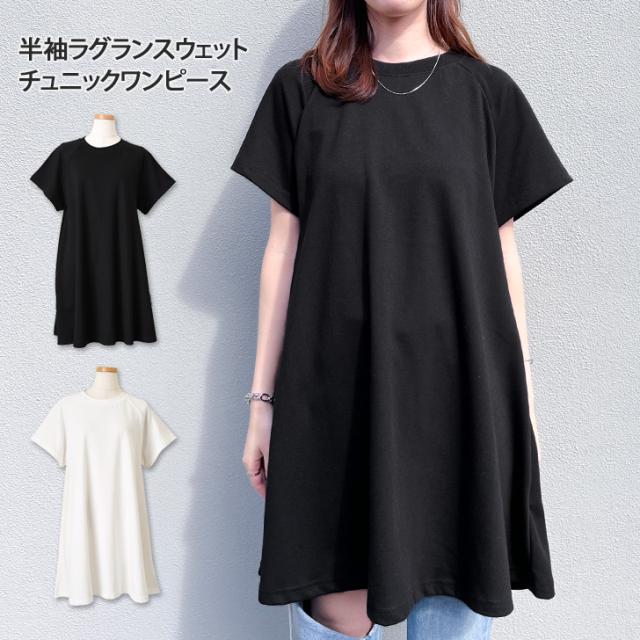 新作 半袖ラグランスウェットAラインチュニックワンピース レディース 夏 涼しい ライトスウェット 薄手 きれいめ Aライン トップス ゆったり リラックス マタニティ 妊婦 ぽっちゃり 体型カバー 無地 おしゃれ