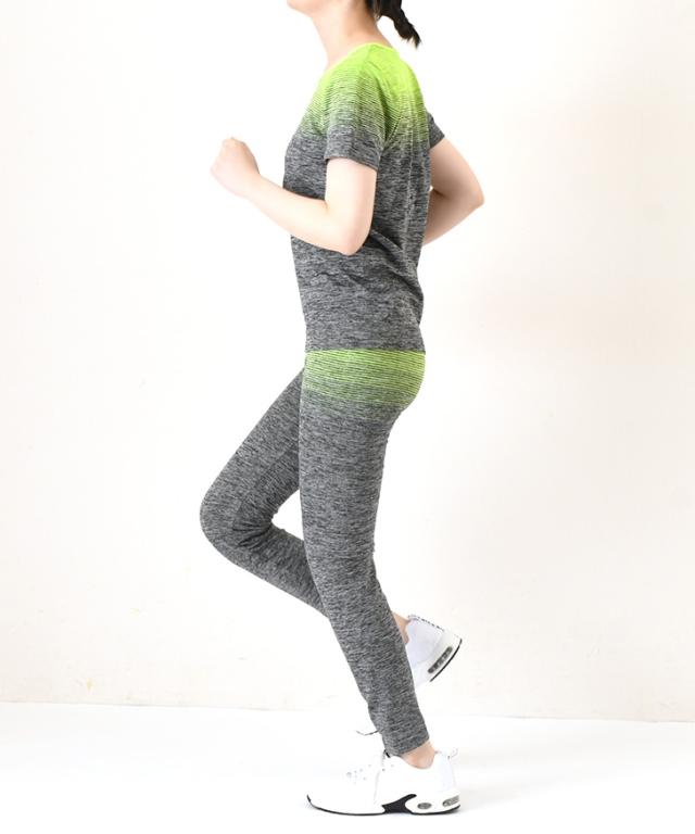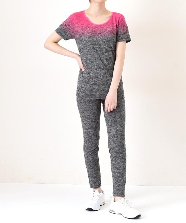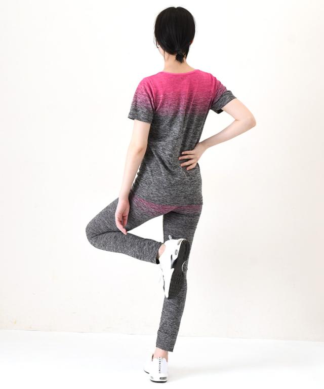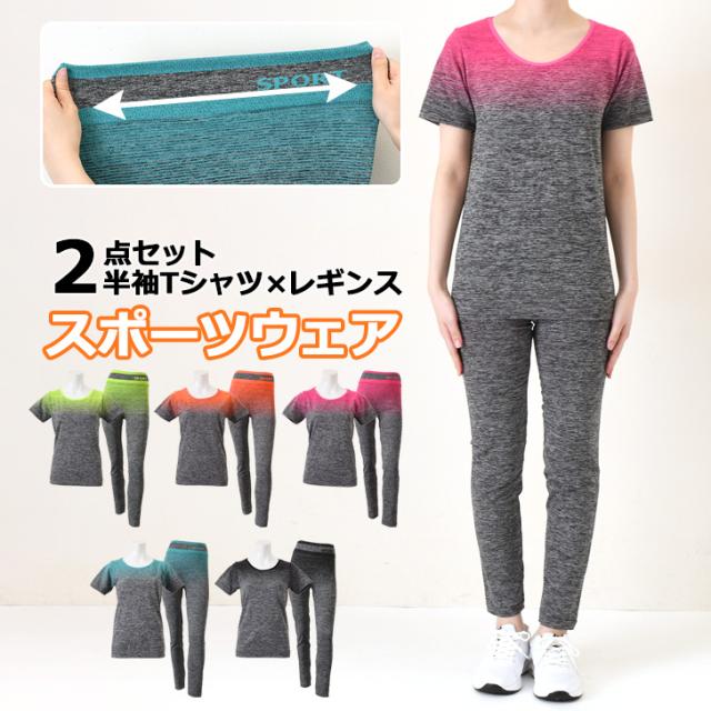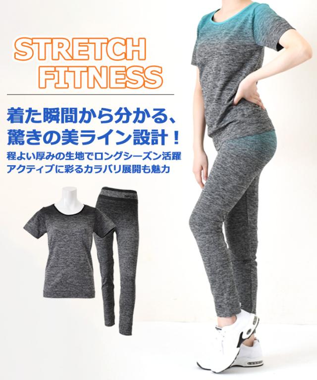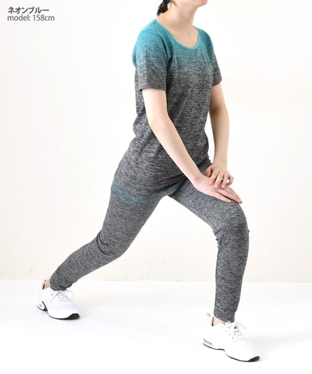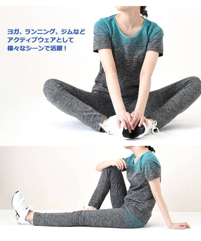 新作 圧倒的美ライン!極ストレッチフィットネス半袖Tシャツ×レギンスセットアップ レディース 上下 セット スポーツウェア トップス パンツ ボトムス 運動 スポーツ ズボン トレーニング ジム ランニング ジャージ