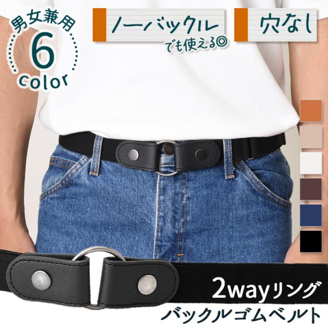 新作 男女兼用2wayリングバックルゴムベルト メンズ レディース ベルト ゴムベルト ワンタッチベルト 無段階調整 穴なし 穴無し ノーバックル バックルレス 楽ちん 伸縮 ゴム 30mm 薄型 スリム おしゃれ
