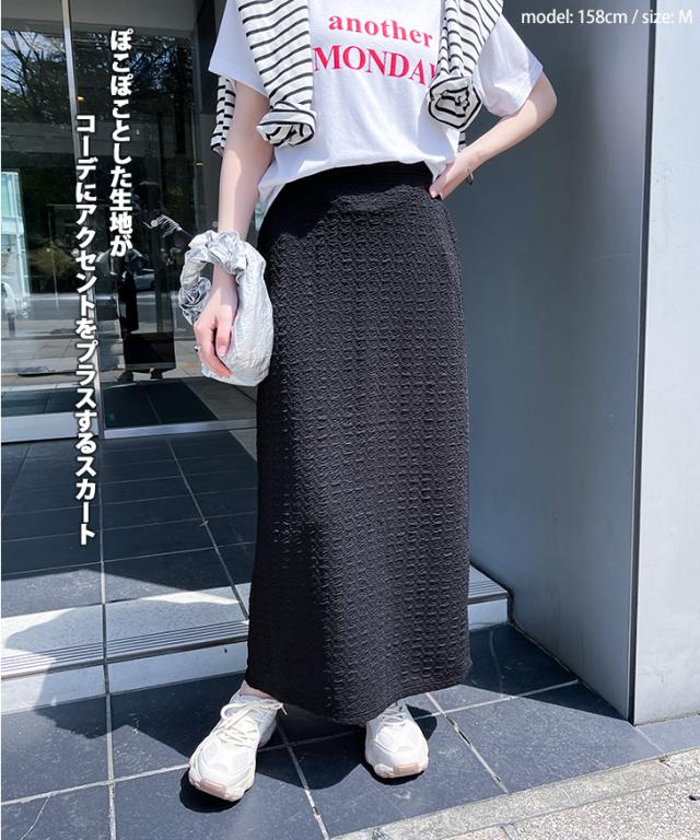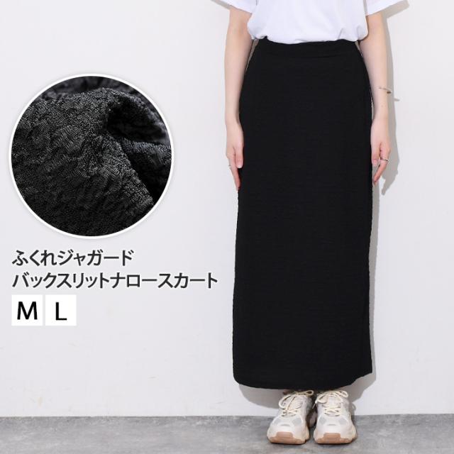 新作 ふくれジャガードバックスリットロングナロースカート レディース ボトムス タイトスカート ロング丈 薄手 春 夏 秋 冬 黒 ストレッチ 伸縮 大きいサイズ オフィス おしゃれ きれいめ ウエストゴム Iライン