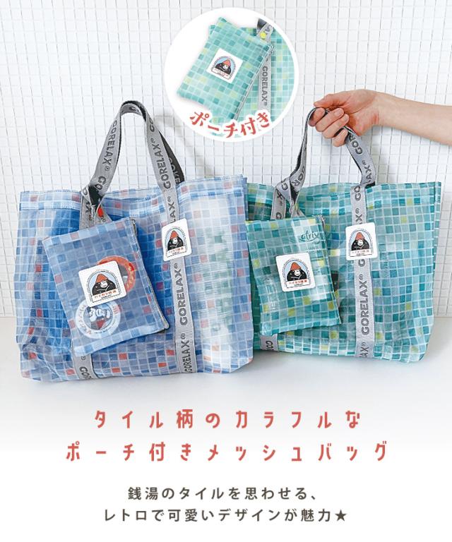 新作 ごリラックス GORELAX ハイカラ銭湯 ポーチ付きメッシュバッグ スパバッグ 温泉バッグ メッシュ お風呂バッグ 銭湯 温泉 風呂 サウナ トートバッグ 小さめ 軽量 ゴリラ マチ付き かわいい おしゃれ