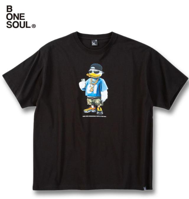 大きいサイズ b-one-soul DUCK DUDE ストリートスタイル 半袖 Tシャツ ブラック 3L 4L 5L 6L/1258-5260-2-49