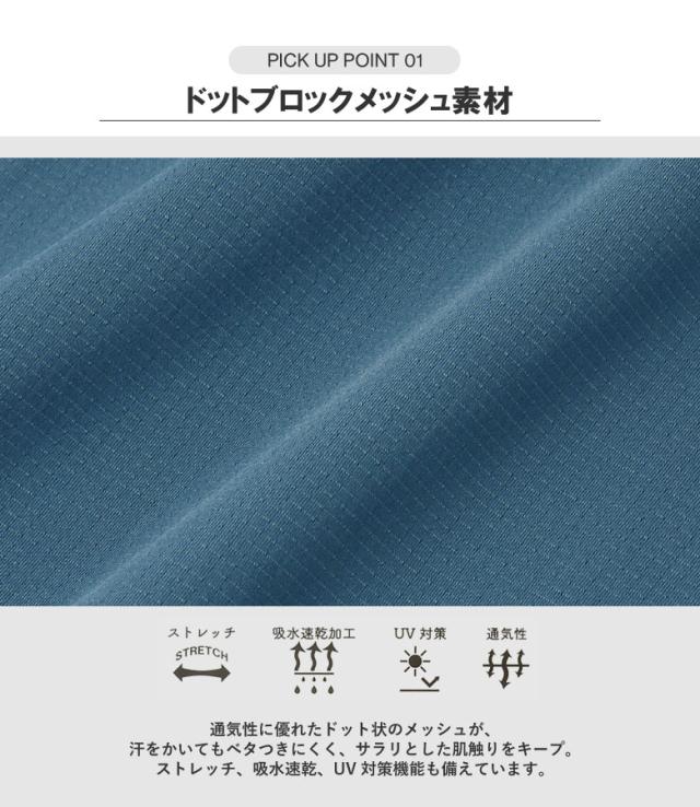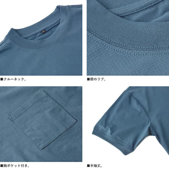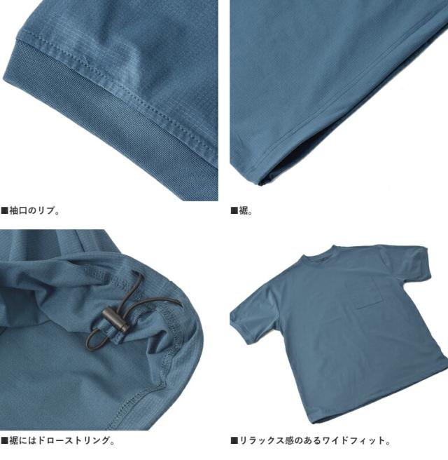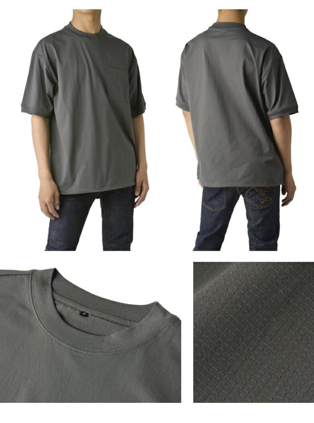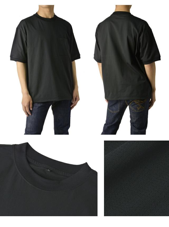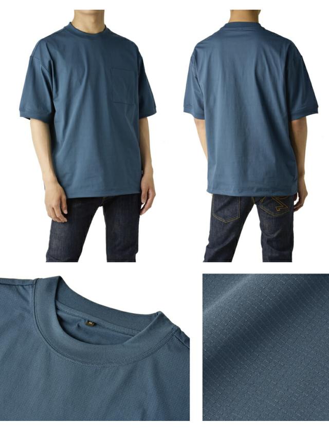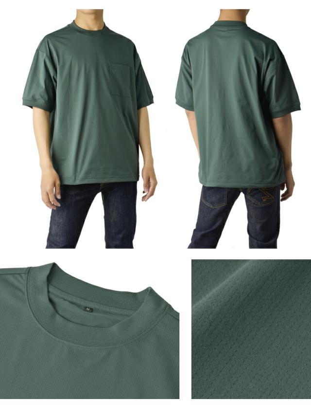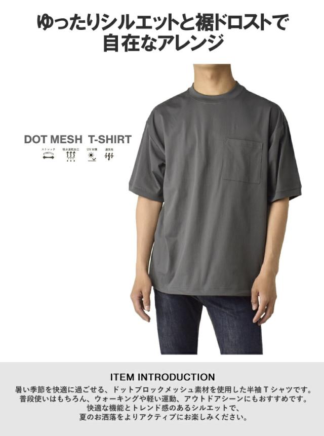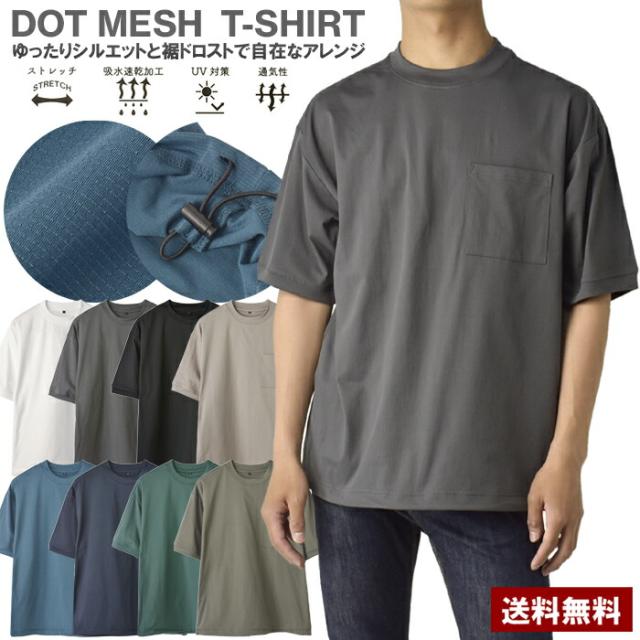 Tシャツ 半袖 吸水速乾 ドライ ドットメッシュ UV対策 メンズ 裾 ドロスト ワイドフィット 快適 加工 通気性 ストレッチ 大きいサイズ【A3T】【パケ1】