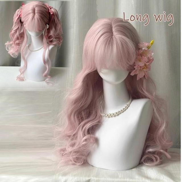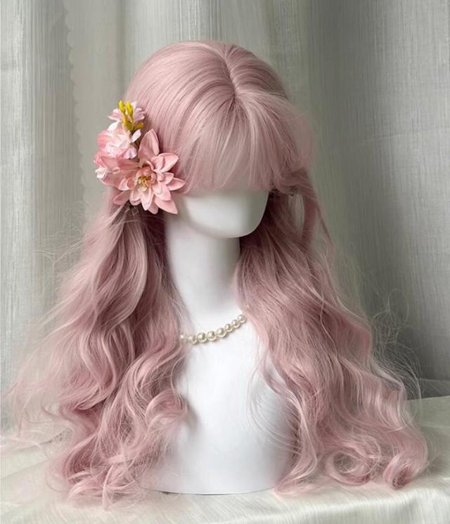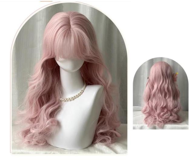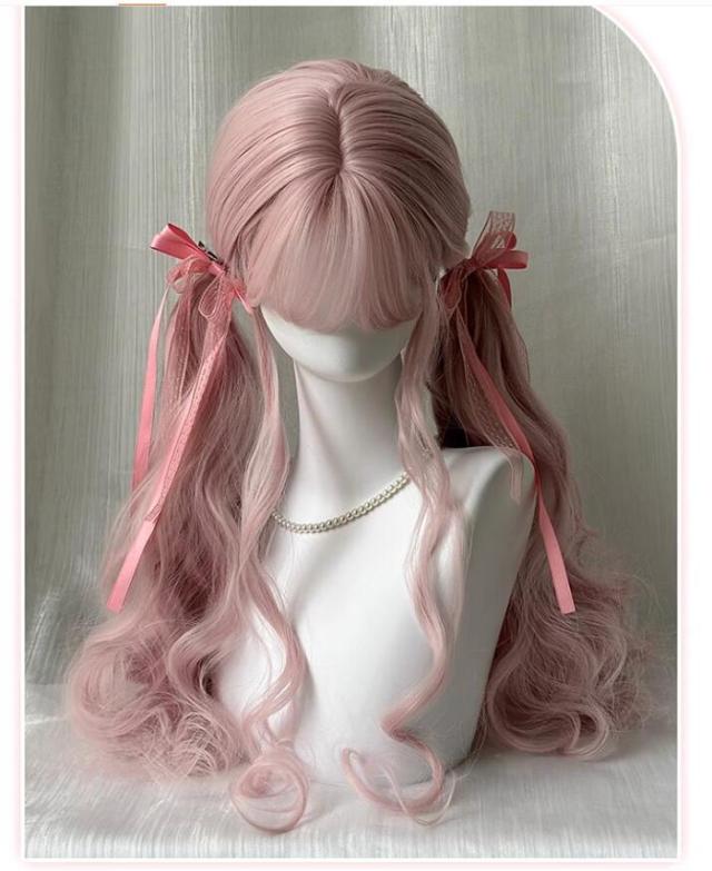 ウィッグ lolita レディース フルウィッグ 小顔効果抜群 ピンク 長髪 ロングウィッグ ゆめ可愛い 原宿風 かつら 巻き毛 ぱっつん前髪 コスプレ ロリータ 可愛い キュート パーティー ハロウィン COSPLAY コスチューム 仮装 変装 女装 イベント 文化祭 学園祭 演劇 舞台 dp333c0c0m6
