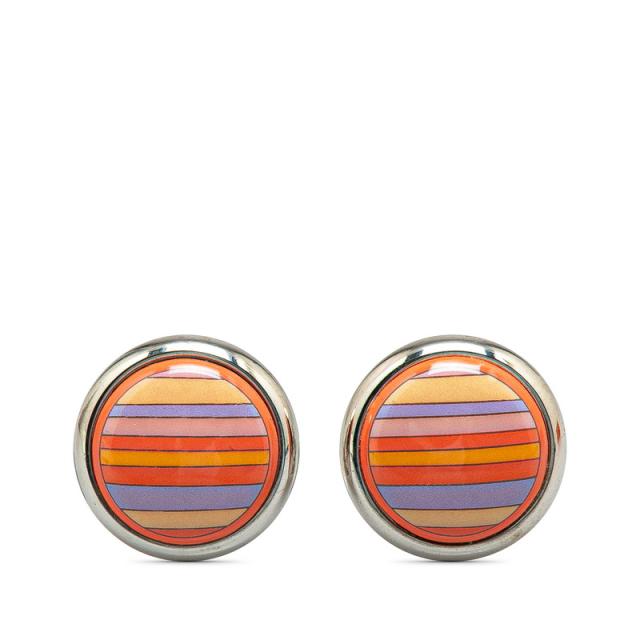 エルメス エマイユ 七宝 ボーダー イヤリング シルバー オレンジ メタル レディース HERMES 【中古】