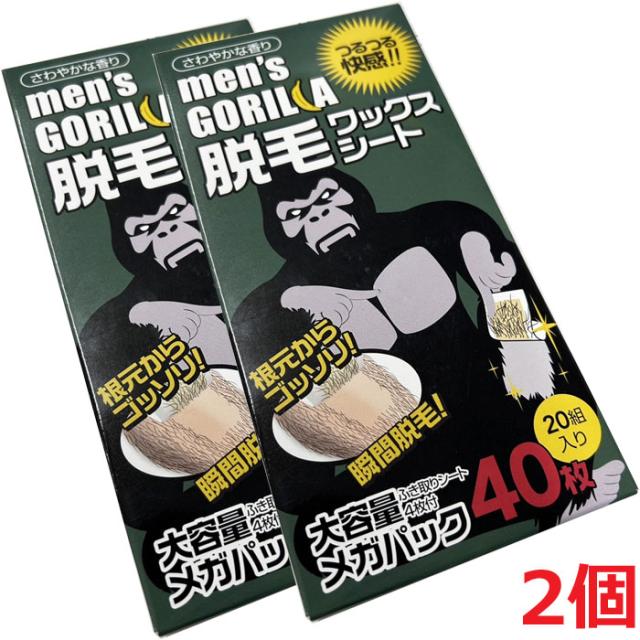 【2個】【メール便発送】メンズゴリラ ワックス脱毛シート メガパック 20組(40枚)入 大容量メガパック(武内製薬)