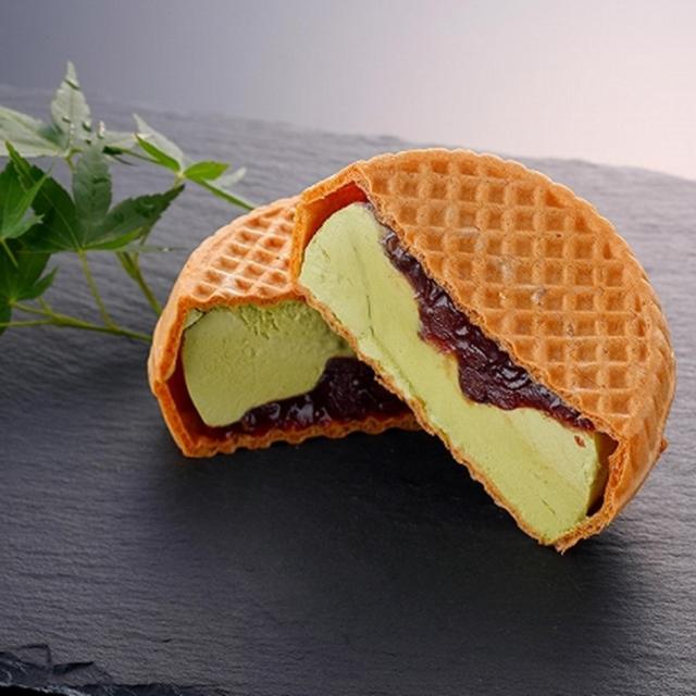 愛知県産「西尾の抹茶」を使用し、やまいもパウダーと生クリームでなめらかに仕立てた抹茶アイスクリームに北海道産のあずきを使用した餡ソースをかけ、香ばしいもなか皮で包みました。