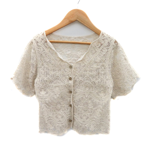 【中古】アプレジュール カーディガン ミドル丈 半袖 スカラップネック レース シースルー F アイボリー レディース
