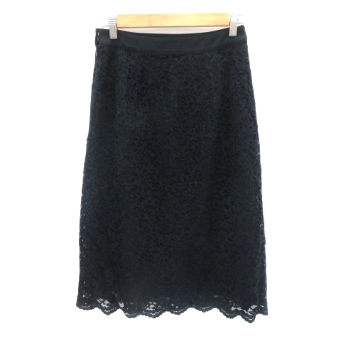 【中古】ニューヨーカー NEWYORKER フレアスカート ミモレ丈 レース 61-89 紺 ネイビー /YK8 レディース