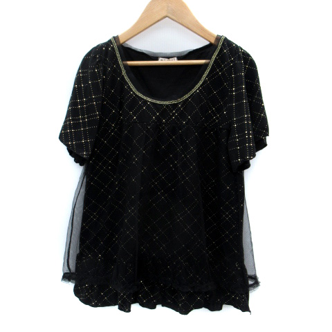 【中古】アクシーズファム カットソー ラウンドネック チュール アーガイルチェック柄 M 黒 ブラック ゴールド色