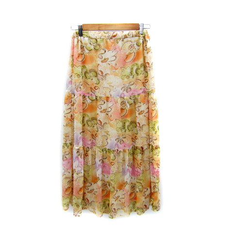 【中古】ドスチ DOSCH フレアスカート ロング丈 マキシ丈 総柄 切替 マルチカラー L イエロー /SY15 レディース