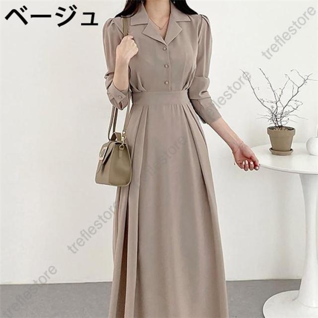 ワンピース レディース 40代 50代 きれいめ 春夏 春 夏 秋 フォーマル 春コーデ 春物 春服 秋物 秋服 服装 無地 襟付き 長袖 ロング丈 膝下丈 ミモレ丈 マキシ丈 Aライン フレア 大きいサイズ 韓国ファッション ウエストマーク お呼ばれ 二次会 オケージョン 結婚式 パーティードレス 入学式 通勤 オフィス カジュアル 婦人服 ミセス 20代 30代 60代