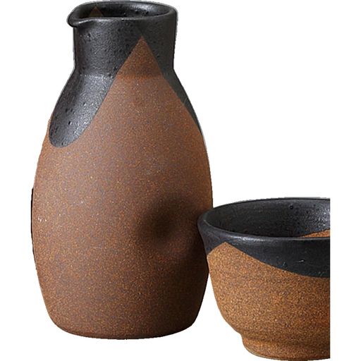 エールネット(ALE-NET) 酒器セット 徳利 おちょこ セット 径8×高14.3CM 300ML 備前黒釉徳利 大サイズセット 陶器 美濃焼 熱燗 燗瓶 冷酒 日本酒