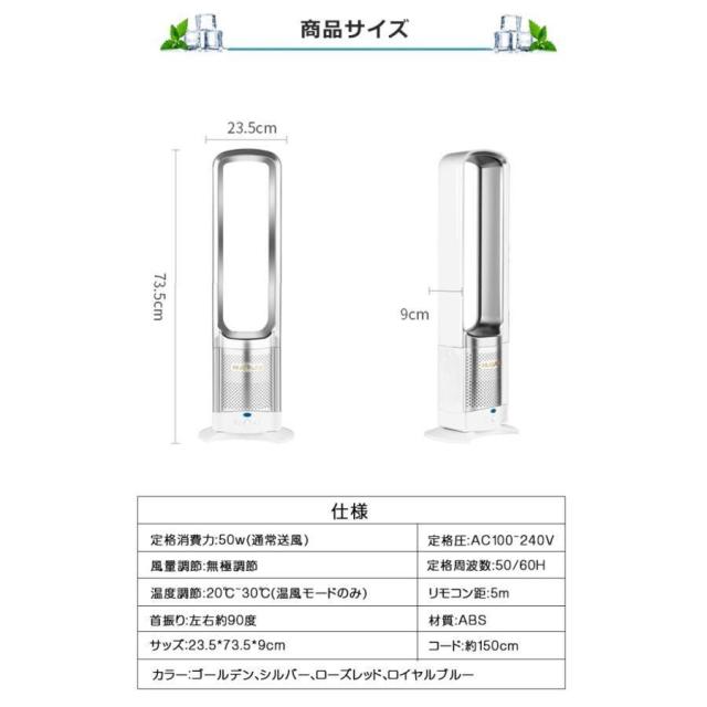 扇風機 タワーファン dcモーター 羽なし リビング 羽根のないファン 空気の循環 花粉?ウイルス対策空気浄化 省エネ スマートリモコン 無羽根 生活家電 予約機能