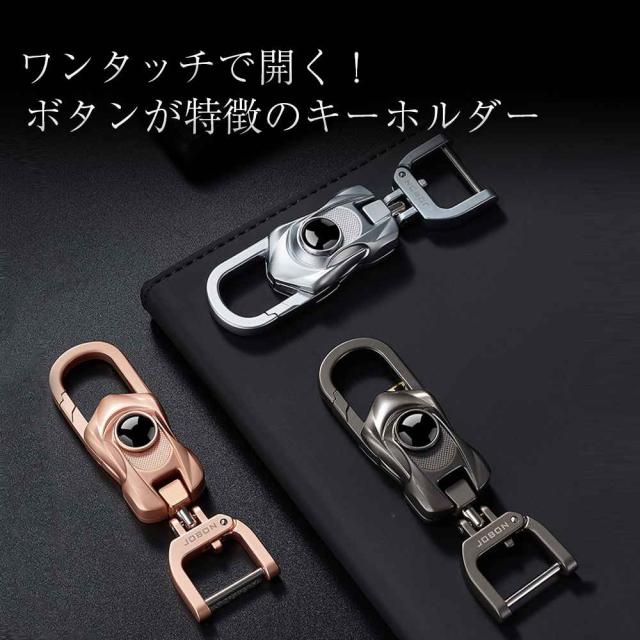 【JOBON】カラビナフックキーホルダー メンズ おしゃれ かっこいい モダン シンプル スタイリッシュ 渋い 男性 キーリング ダブルリング 家 車 オフィス 仕事 鍵 カギ キー ベルト装着 スマートキー アクセサリー 高級感 大人