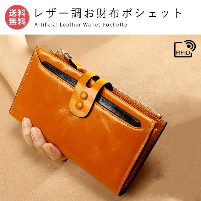 お財布ポシェット 大人 女性 レディース おしゃれ 合成皮革 レザー オイル仕上げ 大容量 RFID&磁気スキミング防止 コンパクト スマホ収納 長財布 ウォレット お財布ポシェット 多収納お財布 スマホポシェット レザー 大容量 カード収納 買い物 散歩 外出
