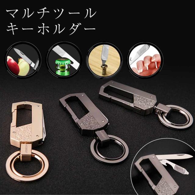 【JOBON公式】多機能キーホルダー マルチツール/ポータブルナイフ/ボトルオープナー/折り畳みナイフ/やすり メンズ 便利 おしゃれ おもしろ キーリング かっこいい 家 車 オフィス 仕事 鍵 カギ キー ベルトループ装着 カラビナフック 高級