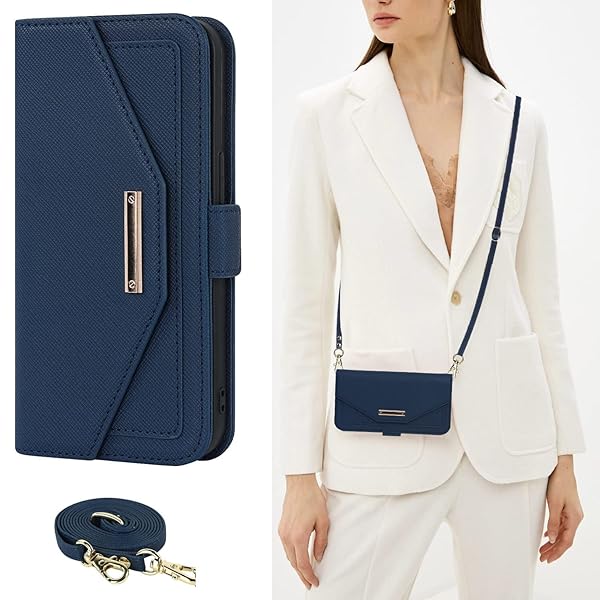 iPhone14 手帳型スマホケース肩掛け 首かけ 斜めがけ ショルダー ケース[鏡付き]iPhone14 財布型ケースiPhone14 スマホケース ショルダー カード収納[マルチパスケース]iPhone14 携帯 カバー iPhone14 case スタンド機能 mirror 可愛い 女性 落下防止落下保護 Qi急速充電対応[ブルー]